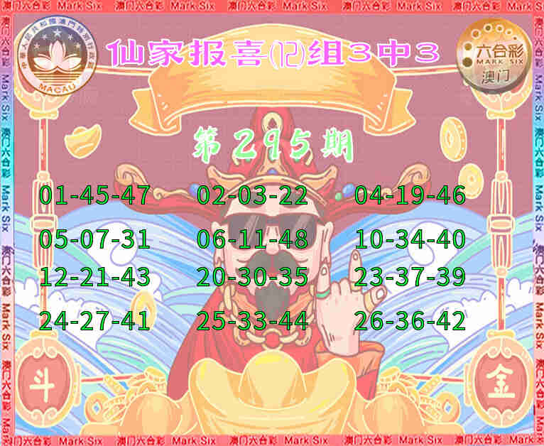 295期:仙家报喜【⑿组3中3】金牌高手